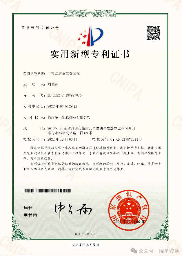 【瑞星】中国胶条博览馆——专利篇(21)